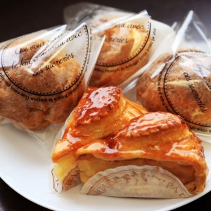 「アップルパイ」はサクッとしたパイ生地で大き目にカットされた林檎がたっぷりで食べ応えも◎!津軽塗のデザインのマカロンはお土産にもピッタリです。