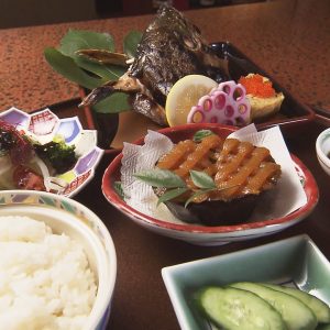 国道280号沿いに佇むお店です。決まったメニューは一切なし!定食や海鮮丼など、その日仕入れた海の幸を使っています。今回おすすめするのは「海鮮丼」!この日盛り付けられたのは、マグロに海峡サーモンにヒラメにタイ!大きくカットされたお刺身を丼ぶりいっぱいに敷き詰めた贅沢な一品です。汁物や小鉢もついて1200円!(※取材時)