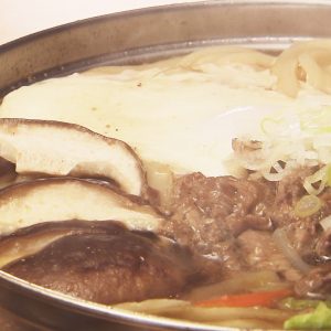 昭和43年にオープン、青森駅西口のすぐそばにある大衆食堂です。旅館と併設のお店で、ボリューム満点、安くて美味しいと評判!今回おすすめするのは「肉なべ定食」。お店特製のつゆは、昆布とカツオでとった出汁に、赤味噌と白味噌を加えています。具材は8種類、豚バラ・白菜・糸こんにゃく・麩を使用しています!どこか懐かしさを感じる、体も心も温まる味わい深い一品です。常連さんの中には、一面に唐辛子をかけたり、生卵を追加してすき焼き風に食べる方も!